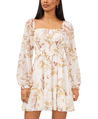 Dainty and delicate smocked bodice dress with adorable square neckline and balloon sleeve details from 1.STATE. Pullover Square neck Long sleeve Lined Ruffle hem Polyester Machine washable Imported Web ID: 12952552