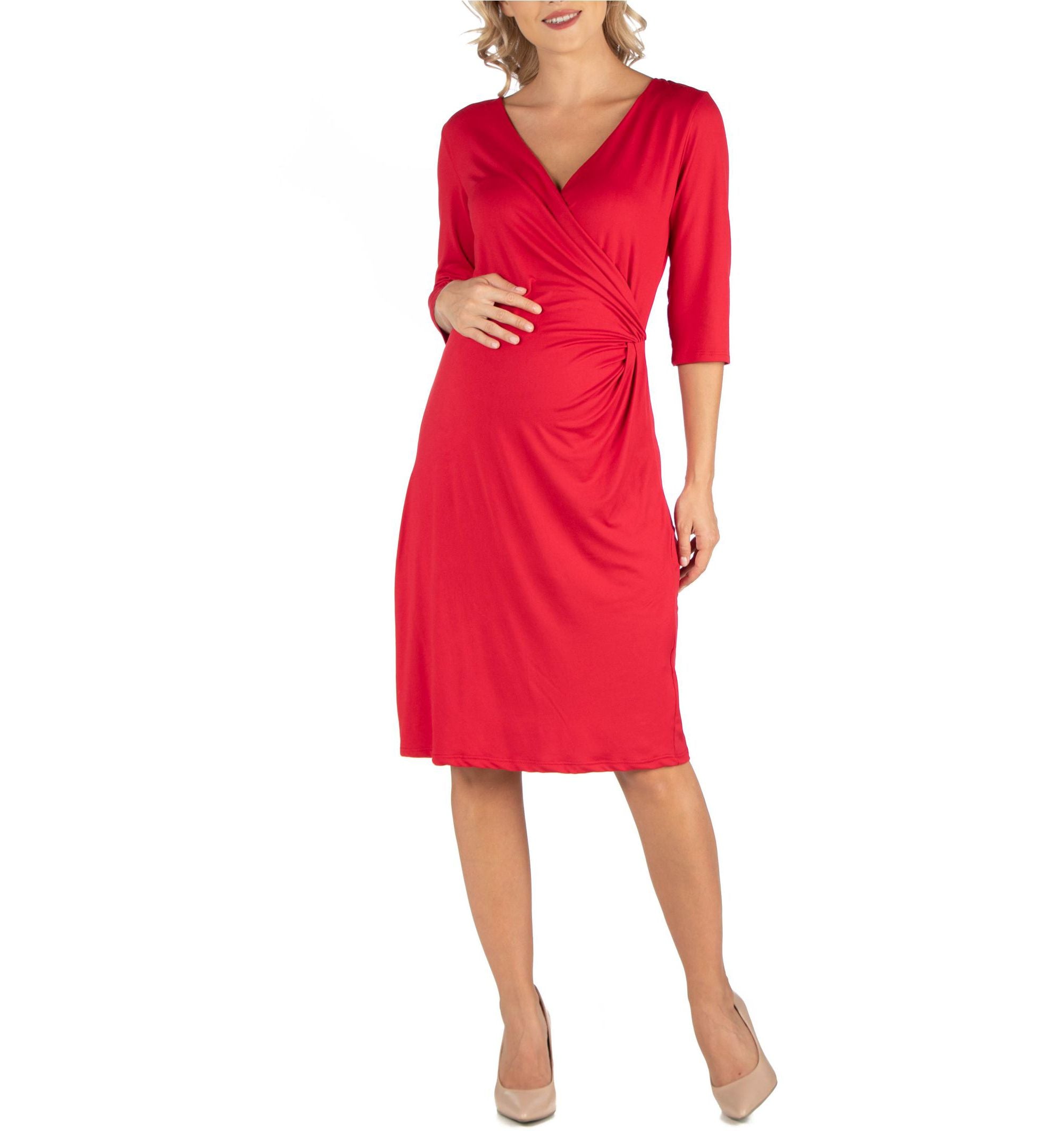 24seven Comfort Apparel Three Quarter Sleeve Knee Length Maternity Wrap Dress