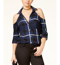 7 Sisters Juniors Cold Shoulder Plaid Shirt