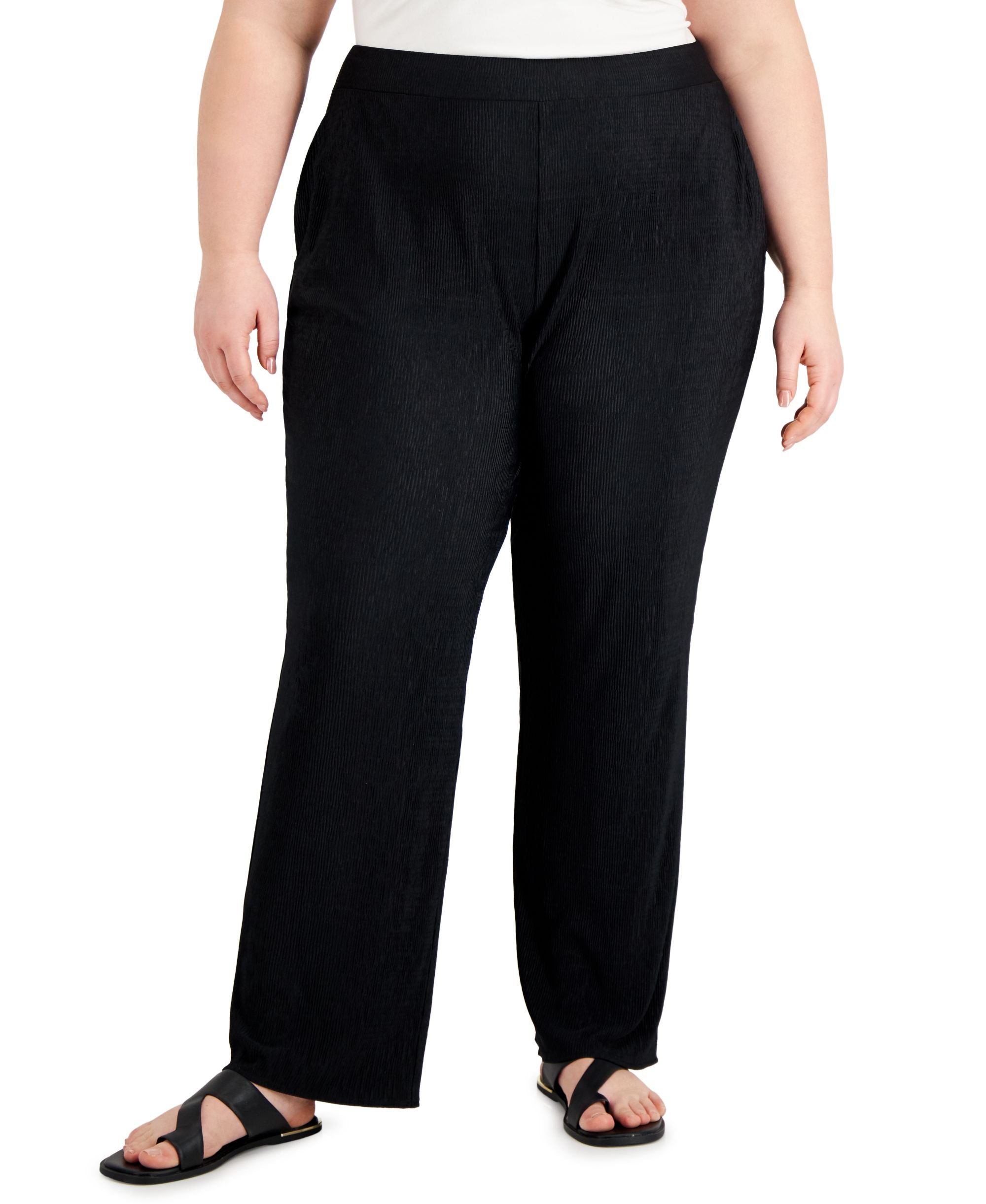 A classic bootcut silhouette defines these plus size pants from Alfani, an effortless pair designed to pull-on with an elastic waistband for comfort.