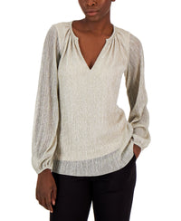 Alfani Womens Pleated Long Sleeve Shimmer Top