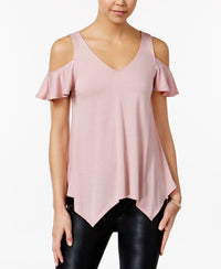 Almost Famous Juniors Ruffle Sleeve Cold Shoulder Top