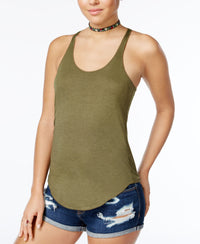 A lightweight tank top designed with a round hem and casual racerback is what every wardrobe needs. From American Rag. Scoop neckline; pullover style Racerback style; round hem Polyester/rayon Relaxed fit; hits at hip Please note: item runs small, consider sizing up Polyester;Rayon Machine washable Imported