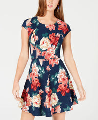 Ladder-style insets up the cute factor of this short-sleeve dress from B Darlin, designed with a pretty floral print on a fit & flare silhouette. Approx. model height is 5'10" and she is wearing a size 9/10 Approx. 30-3/4" long and varies 1/4" between sizes Scoop neckline; Fit & flare silhouette Back zipper closure Ladder insets at bodice and waist Fall Florals featured on The It List Shell: polyester/spandex; lining, insets: polyester Machine washable Imported Web ID: 6716683