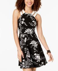 B Darlin's monochromatic double-strap dress really pops next to colorful accessories. Approx. model height is 5'9-1/2" and she is wearing a size 7 Short length; Fit & flare silhouette High neckline; back zipper closure Wide double straps Lined at bodice; molded cups Polyester/spandex; lining: polyester Machine washable Imported
