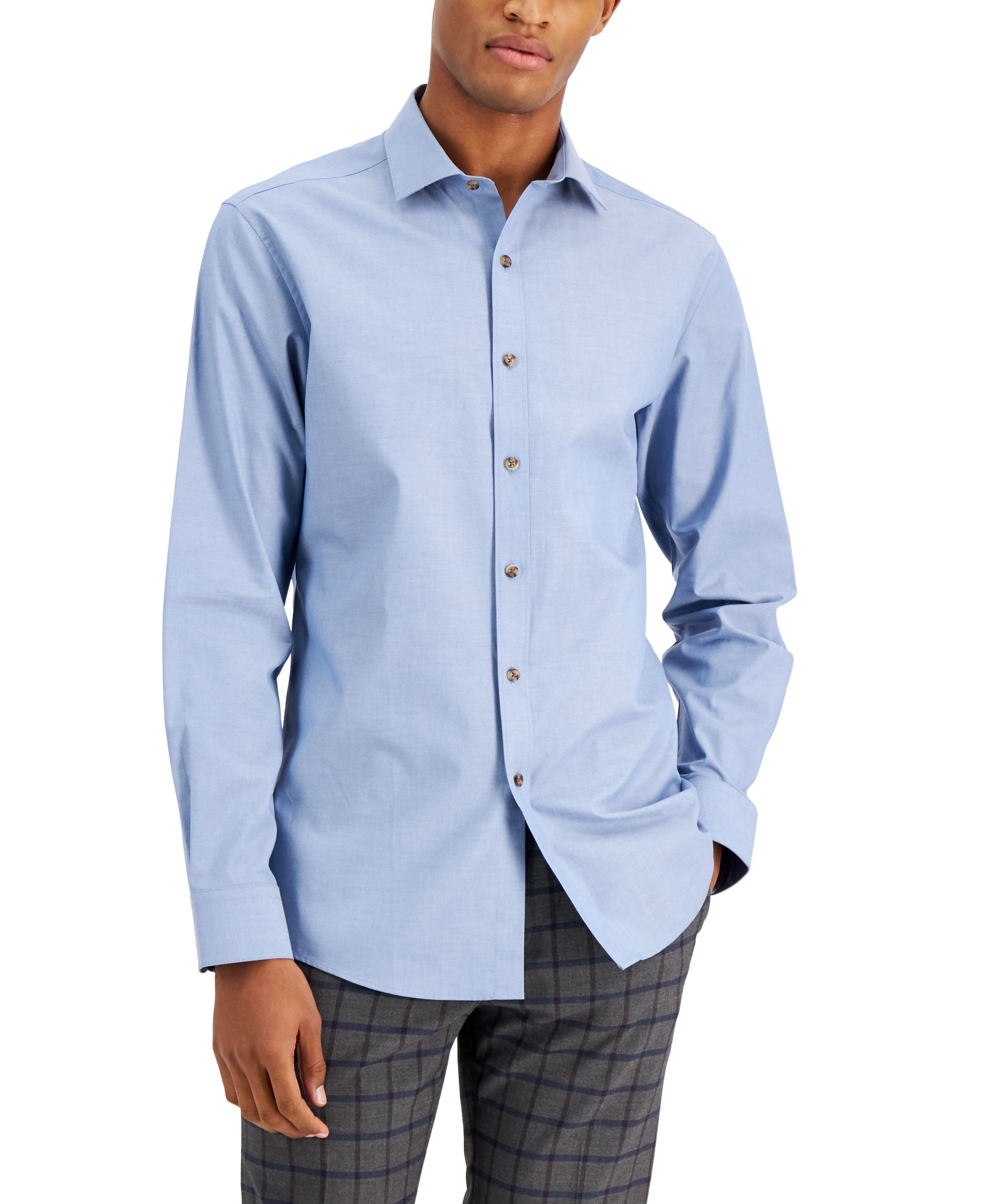 Bar III Mens Slim Fit Performance Stretch Solid Chambray Dress Shirt
