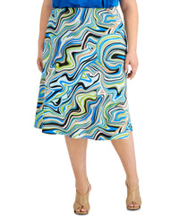 Bar III Plus Size Swirl Print Midi Skirt