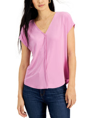 A fashion-forward twist on the T-shirt, this V-neck top from Bar III features a prominent seamed detail at the front. V-neck Seamed at center front Polyester/elastane Machine washable Imported Web ID: 14323129