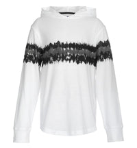 Comfortable jersey long sleeve hoodie updated with a tie dye chest stripe pattern. Hoodie styling Comfortable jersey knit fabric Comfortable fit Cotton, Polyester Machine Washable Imported