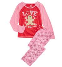 So snuggly and warm, this two-piece pajamas set from Max & Olivia features a darling gingerbread graphic at the front of the top and comfy heart-print pants. Top: crew neck; graphic print at front Pants: elastic waistband with bow Polyester Machine washable Imported Web ID: 6503015