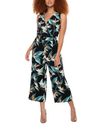 A colorful print brings this cropped jumpsuit from Black Tape to a stylish finish, accented with a surplice V-neck. Approx. model height is 5'9" and she is wearing a size small Approx. inseam: 24" Mid-rise; front: approx. 12-1/2"; straight leg Surplice V-neck Polyester/spandex Machine washable Imported Web ID: 13083600