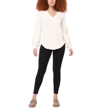 The raw-edge hemline and exposed seams give this top by Black Tape a lived-in feel, perfect for those relaxed days this piece is finished in breathable cotton comfort. Approx. 27-1/2" long V-neck Exposed seams; rounded raw-edge hemline Long sleeves with dropped shoulders 100% cotton Machine washable Imported