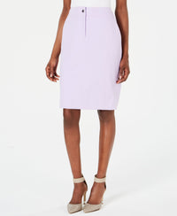 Calvin Klein updates this essential pencil skirt with a hint of stretch for office style that isn't constricting. Approx. model height is 5'10" and she is wearing size 6 Approx. 22" long Front zipper and button closure Slit at center back Pockets at front Lined Polyester/viscose/spandex; lining: polyester/spandex Dry clean Imported