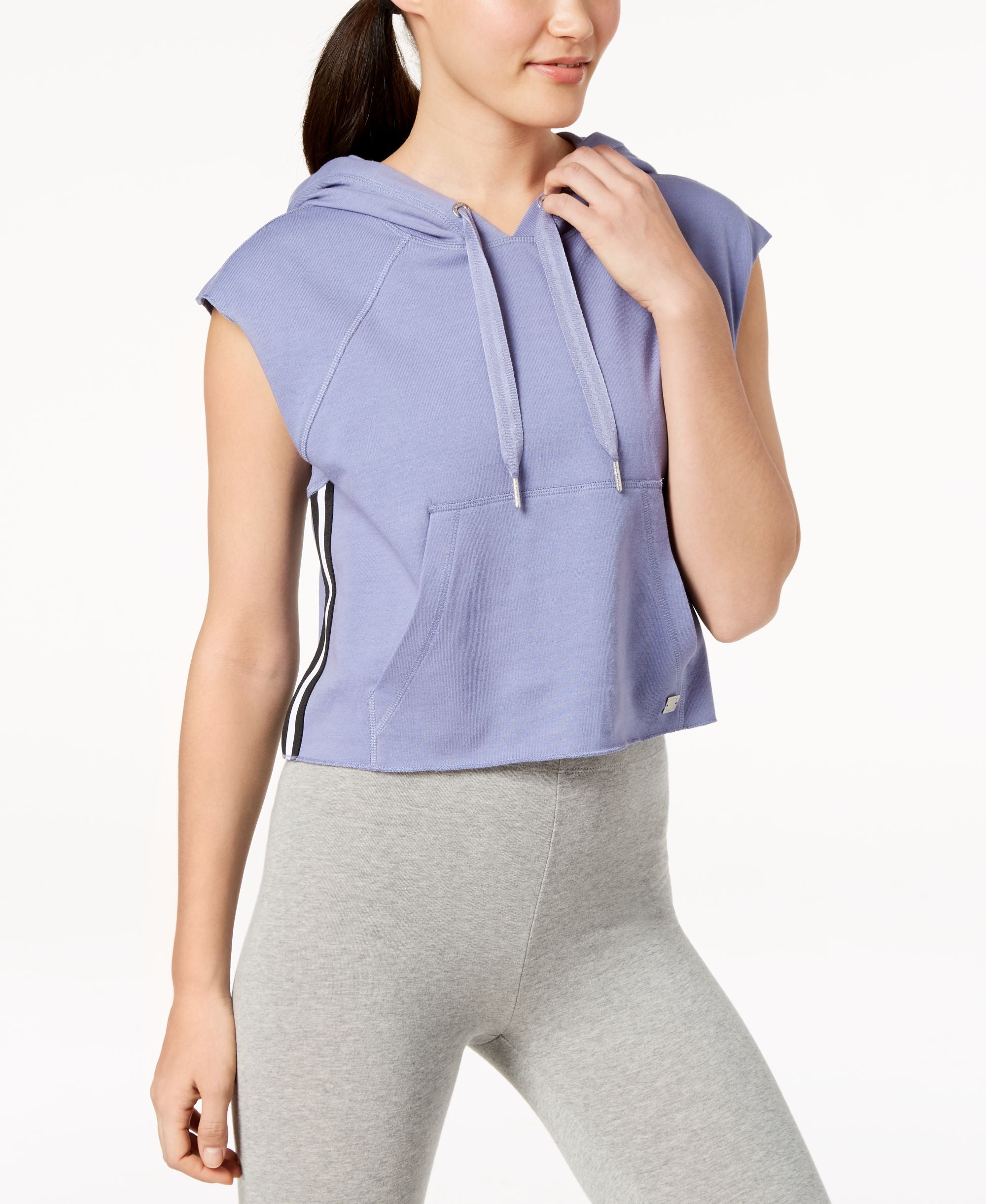 Expand your active repertoire with this fresh look from Calvin Klein Performance, a cropped hoodie with a floral accent at the back and a sleeveless silhouette for cool comfort.