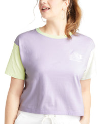 Sporty style is colorblocked into the cute cropped shape of this comfortable T-shirt from Champion. Relaxed cropped fit Crewneck; drop-shoulder short sleeves; colorblocked design; script logo at left chest; C logo at sleeve Cotton/polyester Machine washable Imported Web ID: 12665575