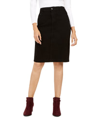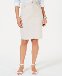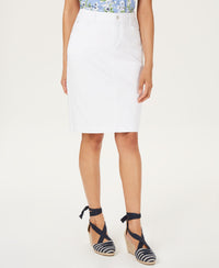 Designed with a tummy-control panel and touch of stretch, Charter Club's denim skirt creates a sleek, streamlined silhouette. Zipper and button closure at front; belt loops Imported Tummy control panel at front