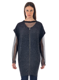 Short sleeve dress Scoop neckline Center front zipper closure Front slip pockets Not lined