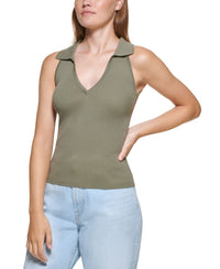 DKNY Jeans Womens V-Neck Polo Tank Top Sweater