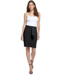 DKNY rethinks the classic pencil skirt, this time with a tie at the front and discreet slash pockets at the hips. Approx. 19-1/2" long; Pencil silhouette Back zipper closure Foldover waistband with tie at front Slash pockets at hips Lined Polyester; lining: polyester Hand wash Imported Web ID: 14839425