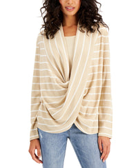 Fever's figure-flattering long sleeve top features a stylish twisted-front with allover stripes elevated by a chic waffle knit texture. Scoop neck Allover waffle-knit texture; twisted front detail Long sleeves Polyester/rayon/spandex Machine washable Imported