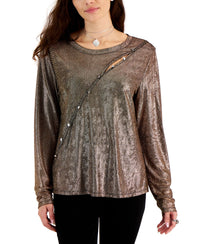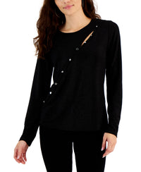 Bring the polish, the charm and standout with this women's top from Fever, mix and match with your favorite bottoms for an always-chic look. Scoop neckline Cutout with asymmetrical button trim at front Lurex metallic threads/nylon/spandex Machine washable Imported
