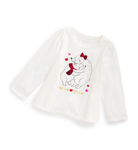 Give her a lovely look with the charming print of two bears hugging on this soft long-sleeve tee by First Impressions. Crewneck Long sleeves Pull on style Bear hug print at front with bow Cotton/polyester Machine washable Imported