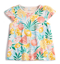 A super-sweet choice for sunny days, this cap-sleeved top from First Impressions is decorated with a colorful fruit print. Crewneck Cap sleeves Allover print Cotton/polyester Machine washable Imported