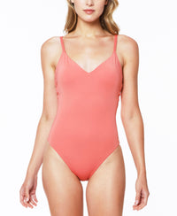 The Flow Solids swimsuit from Sanctuary is a sleek one-piece pick designed with crisscross straps at the back. Moderate bottom coverage Imported V-neck Removable cups Lined Pullover styling; crisscross straps at back