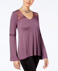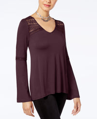 Hippie Rose Juniors Lace Trim Bell Sleeve Top