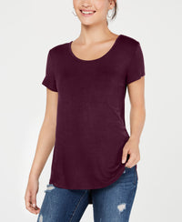 Crisscrossing straps dress up the V-back of a Hippie Rose T-shirt that's like a basic, only better. Approx. model height is 5'10" and she is wearing a size medium Hits at hip Scoop neckline V-back with crisscrossing straps; scoop hem Runs small, we suggest sizing up for the perfect fit Rayon/spandex Hand wash Imported