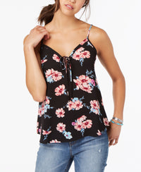 Lace it up and look cute in Hippie Rose's adjustable camisole tank top in your pick of pretty prints. Approx. model height is 5'10" and she is wearing a size medium Hits at hip V-neckline with grommet & lace-up detail Adjustable spaghetti straps Polyester/spandex Hand wash Imported Web ID: 7417015