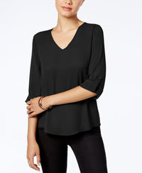 V-neckline 3/4 Sleeve Hits at hip 100% Polyester Imported