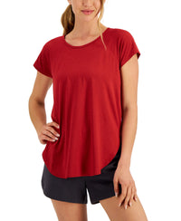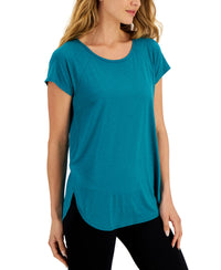 Fits to a T. Ideology's relaxed style offers the perfect fit for any endeavor, from spin class to just sitting around the house. Approx. model measurements: height: 5'10"; bust: 31-1/2"; waist: 24"; hips: 35" Relaxed fit; approx. 27" long INSPIRED for: training Scoop neckline Polyester/spandex Machine washable Imported