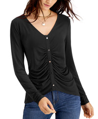 INC International Concepts Womens Ruched Button Detail Long Sleeve Top