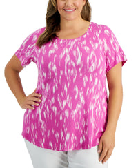 JM Collection brings vibrant color to your wardrobe with this printed T-shirt designed to flatter the plus size figure. Approx. model height is 5'10" and she is wearing a size 1X Relaxed fit; hits at hip; approx. 30-1/2" long Scoop neckline Rayon/spandex Machine washable Imported Web ID: 13807797