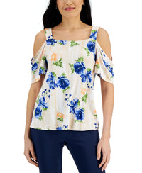 JM Collection Womens Printed Cold-Shoulder Top