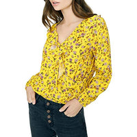 Sanctuary offers a look that's bohemian and polished at once in this breezy blouson top, styled with ruffles and cinched details. Hits at hip; approx. 25" long Surplice neckline with snap closure Ruffled detail; cinched at cuffs and hem Rayon Machine washable Imported Web ID: 8126618