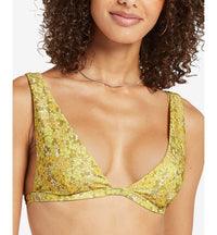 Swim season is in bloom. Gear up with this plunging floral-print bikini top from Volcom. Removable cups Hook closure at back; adjustable straps V-neck; allover print Unlined REPREVE polyester/elastane Hand wash Imported