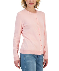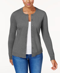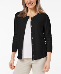 Get an elegant finishing touch with this classic cardigan from Karen Scott. Imported Crew neckline Shopping for a medium size? This sweater measures 24.5" from the shoulder to hem for the perfect fit. Approximate model height is 5'10" and she is wearing a size small Generous sizing; if in-between sizes, consider sizing down Machine washable Cotton/viscose/nylon