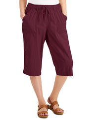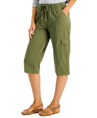 Add a flattering capri style to your wardrobe with these pants from Karen Scott. Approx. inseam: 18" Rise: 11-3/4". straight fit Due to generous sizing, we suggest sizing down for the perfect fit Designed to fit and flatter 5'4" and under frame Pull-on style; drawstring waistband On-seam pockets at hips; cargo pocket at thigh All cotton Machine washable Imported Web ID: 14268053