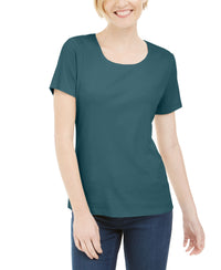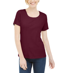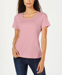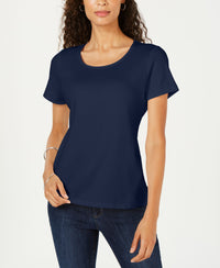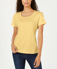 Simply stylish. Karen Scott's petite top features a flattering scoop neckline and soft cotton material. Approx. 27" long Designed to fit and flatter 5'4" and under frame Scoop neckline By choosing cotton products from this brand, you're supporting investment in Better Cotton's mission. This product is sourced via a system of mass balance and therefore may not contain Better Cotton All cotton Machine washable Imported Web ID: 11174063
