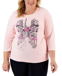 Karen Scott Plus Size Paris Corner 3/4 Sleeve Top