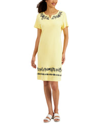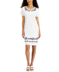Karen Scott Womens Embroidered Split Neck Dress