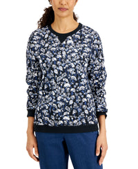 Karen Scott Womens Summer Blooms Printed Fleece Top