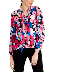 Kasper Printed Tie Neck Long Sleeve Top
