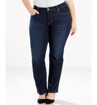Levi's plus size straight-leg jeans feature a slimming panel for a flattering fit-- pair them with your favorite tops! Find the perfect fit. Click on our shaping video in the photo today! Mid rise: waistband sits below natural waist Slim fit through hips and thighs Approximate inseam: 32" Straight leg; five-pocket styling Designed to smooth and enhance with slimming technology Button-front closure with zip fly; belt loops Cotton/polyester/elastane Machine washable Imported Web ID: 2291039