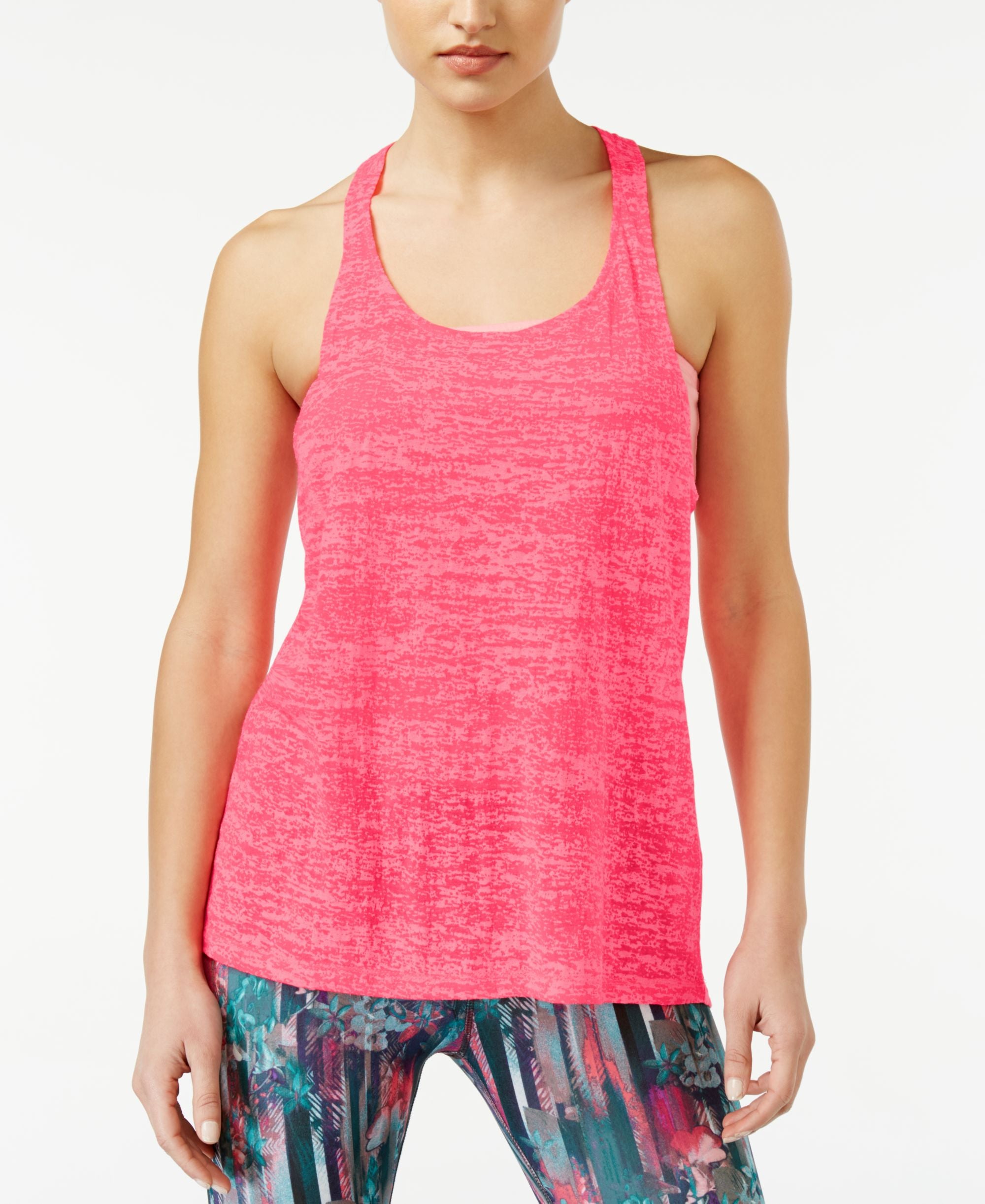 Build your activewear collection with this sheer racerback tank from Material Girl. It look so cute with all of your active leggings. Machine washable Imported Scoop neckline Pullover styling Sleeveless Sheer fabric; racerback