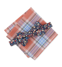 Men's Barrett Floral Bow Tie & Plaid Pocket Square Set