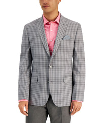 Establish a smart, modern look at work or at dressy settings with the sophisticated patterning and tailored cut of these blazers by Bar III. Slim fit through the shoulders, chest and waist with higher armholes and slimmer sleeves Height recommendation: Short (S) = 5'7" and under; Regular (R) = 5'8"-5'11"; Long (L) = 6' and over Notched lapel; two-button collar Four-button decorative cuffs Welt pocket at left chest; two flap side pockets Side vents Fully lined Shell: polyester/viscose/spandex; lining: polyester Dry clean Imported