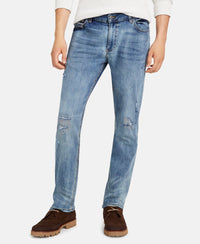 Distressed to perfection and ready to team up with your favorite sneakers and tees, these straight-fit jeans from SUN + STONE are an unbeatable choice when you want rugged, stretch-cotton style. Sits below waist Straight fit Zip fly with button closure Five-pocket design Whiskering and distressed detail Cotton/Spandex Machine washable Imported